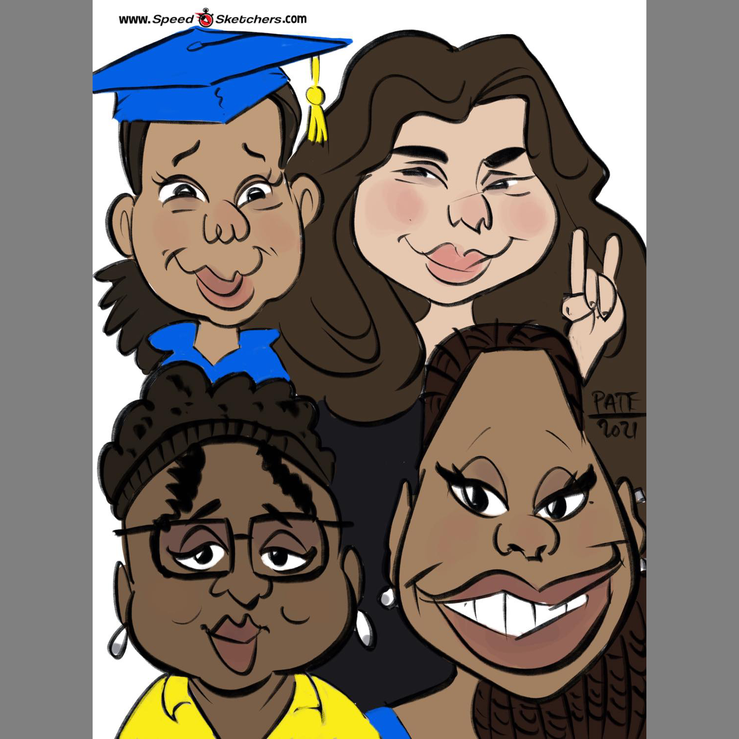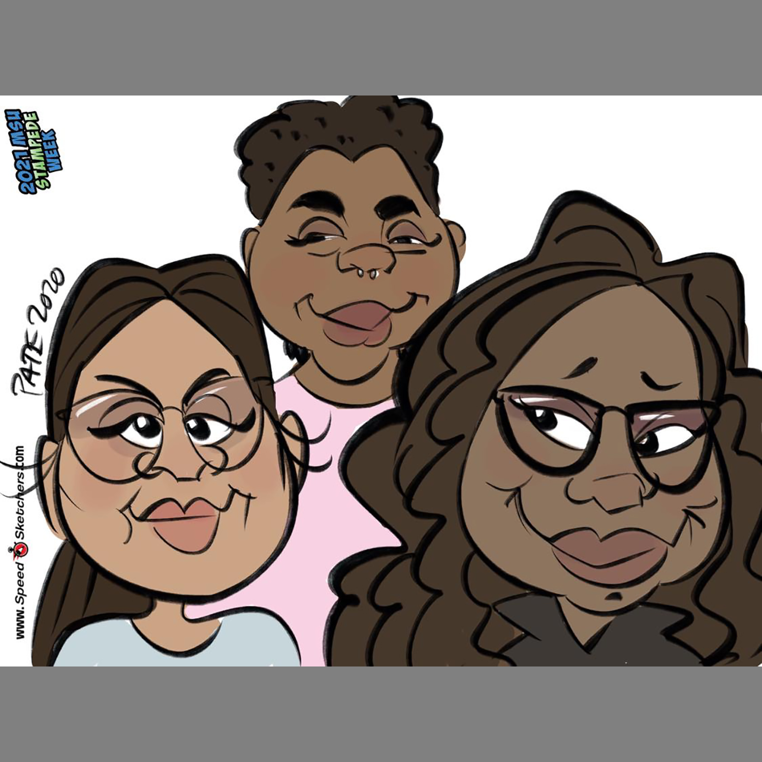 BeeJay was AMAZING!! The students LOVED her! She was so quick and the drawings that she produced were GREAT! She was awesome with requests to add “extra” things to drawings (she added a pick to someone’s hair when he forgot his in his dorm room). She was funny, fast, and we would LOVE to bring her back sometime!